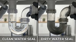 Разряжение создает эффект "всасывания", который вытягивает жидкость из колена сифона. После этого в квартиру беспрепятственно проникают газы из канализации.