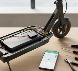 Миниатюрный GPS-маяк, спрятанный в раме самоката. Передает координаты на телефон.