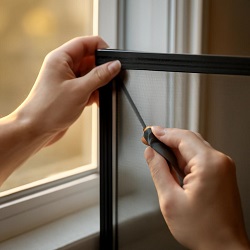 Начните с разметки. Установите сетку на подоконник и проверьте, входит ли она в проем без усилий. Если края выступают, подрежьте алюминиевую раму ножовкой по металлу, ориентируясь на уровень для идеальной горизонтали. Вставьте сетку в нижний паз рамы окна, нажимая равномерно, чтобы она села на упоры. Затем поднимите верхний край и зафиксируйте клипсами или крючками — обычно их четыре на стандартное окно шириной 1,2 метра.